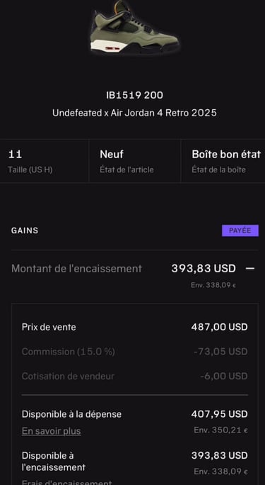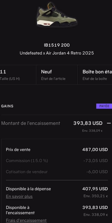 "oe ma paire est parti vi vite et tout en plus je me suis fais un bénéfice de 200€ !"